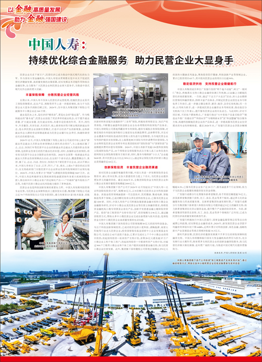 长期以来,中国人寿不仅深入民营经济运营肌理,挖掘民营企业及员工保险保障需求,还在产品、理赔等环节上进一步提质增效,致力于为民营企业大显身手消除后顾之忧。2024年,仅中国人寿集团旗下财险公司就服务中小微企业近160万家。