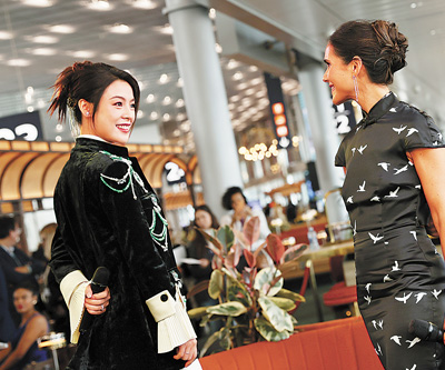 2024年10月10日,在法国巴黎戴高乐机场举行的“中法金秋文化盛宴”活动上,中国越剧演员陈丽君(左)与法国歌手联袂演绎越剧选段。