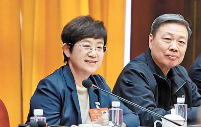 3月5日,全国政协委员、中国工程院院士乔杰(左)在小组会议上讨论报告。