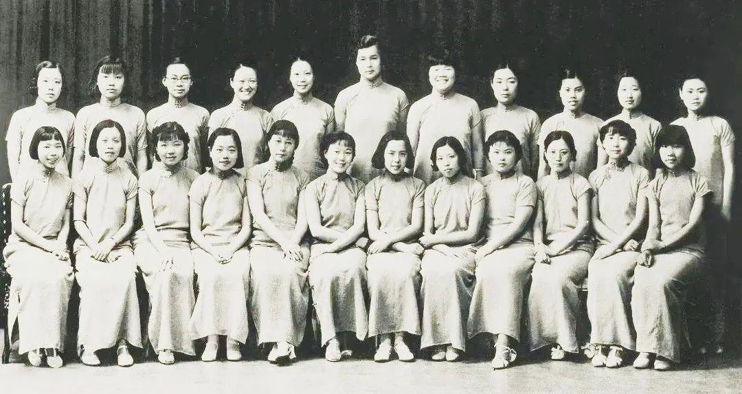▲天津中西女中1937年毕业生合影。前排左三为翻译家杨苡,后排左三是北洋政府总理颜惠庆女儿颜枬生、左五是朱启钤女儿朱浣筠、最右是北洋将领吴新田侄女吴华英