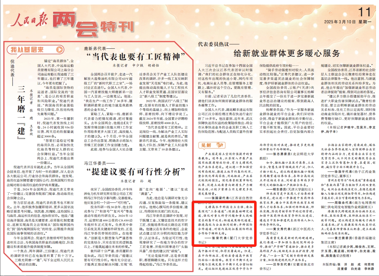 2025年全国两会 | 厦门大学党委书记张荣代表:拓展深化“三条通道”