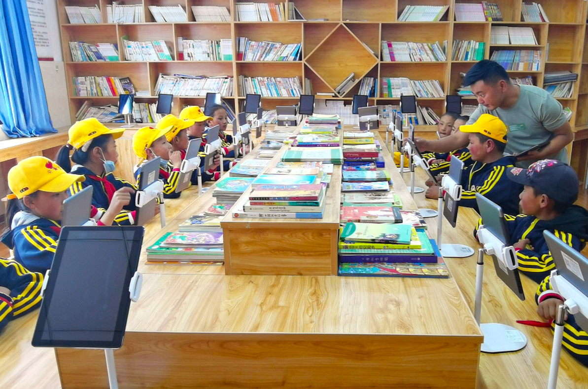 到达学校后,她迫不及待地走进教室,开始了新的学期。课间休息时,拉姆最喜欢去的地方是学校的图书室。这个小小的空间,是她知识的宝库,也是她梦想的起点。书架上摆满了各式各样的书籍,既有藏语的经典著作,也有汉语的科普读物,还摆放着50多台平板电脑,轻触屏幕,整个世界就在她眼前展现出来。她常常坐在角落里沉浸学习,梦想着自己将来走出大山,去拉萨、去北京,实现自己的梦想,过上更加幸福美好的生活。