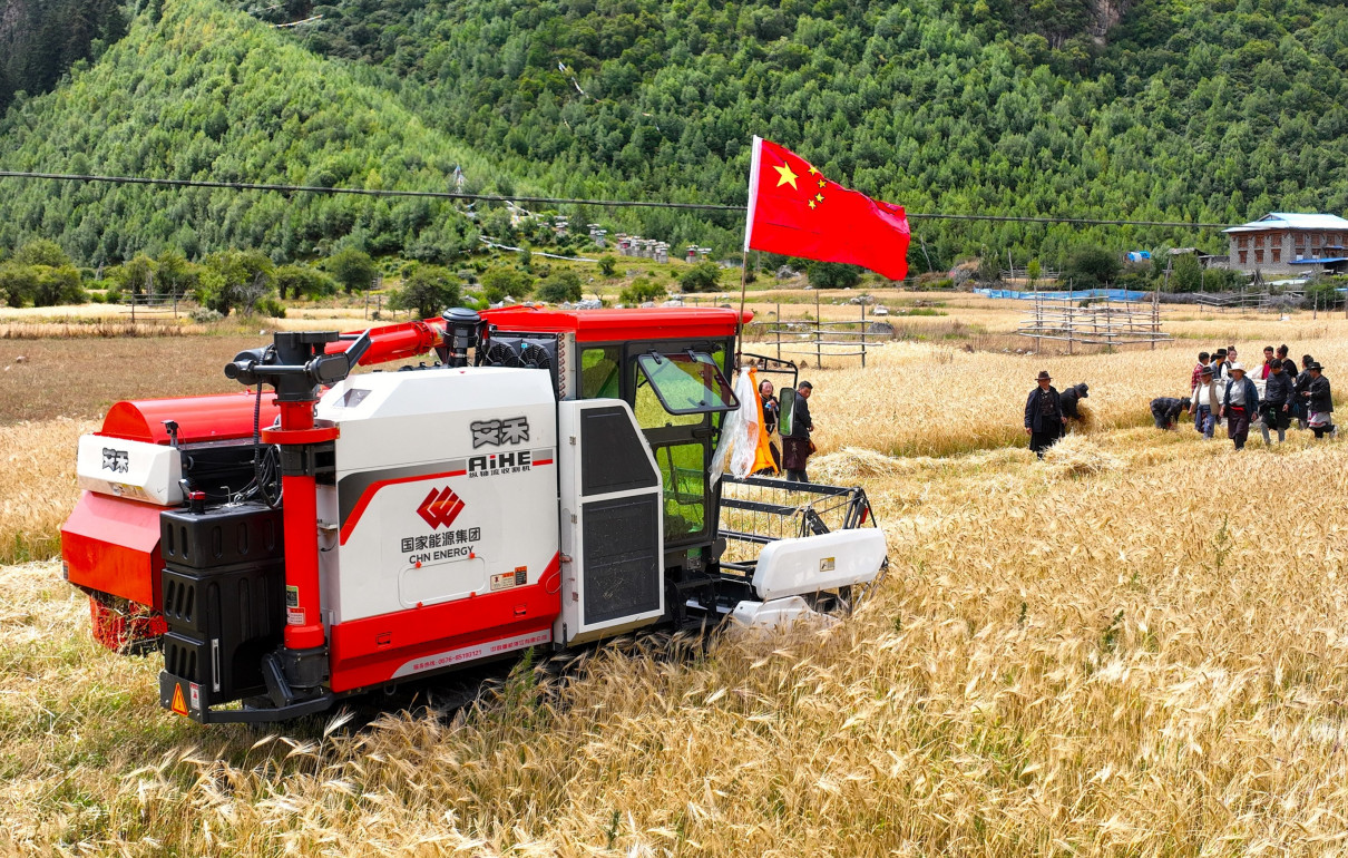 今年的青稞收成好,成片的青稞地像金色的地毯铺满山谷,那美好的画面深深印入拉姆的脑海,而让她记忆更深的是村里的新收割机。以前靠人力收割的时候,全家人要面朝黄土背朝天劳作很久。2024年,国家能源集团向白雄村和依嘎村各捐赠了一台收割机,仅用7天就完成了全村的青稞收割工作,全村人在青稞地旁看着这台“超级收割机”,脸上乐开了花。拉姆的父亲兴奋地说,“以前手工收割累死累活,现在有了这台机器,简直是又快又好,我的老腰也不用再弯下去了!”