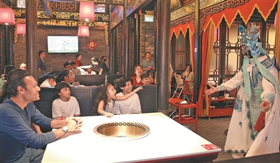 潘国余说,迪拜小龙坎火锅店的位置在华人聚居区,但现在40%的客人来自世界各地。这说明只要把握好品质,中国餐饮品牌“走出去”有着巨大空间。“我们发现,很多国际客人来这里,一是因为吃火锅能自己掌控口味与火候,有仪式感,二是能更多体验中国文化。”为此,小龙坎火锅店特意安排了川剧变脸、甩面秀、古筝弹奏等表演(见图③,本报记者管克江摄),还提供传统服饰供客人试穿、拍照。“火锅店的装修是古色古香的川西风格,包厢名字也具有蜀地文化特征,如青梅煮酒、三顾茅庐、桃园结义等。每当有外国朋友问起包厢名的含义,我们都会仔细解释其历史典故,做好美食的同时讲好中国故事。”