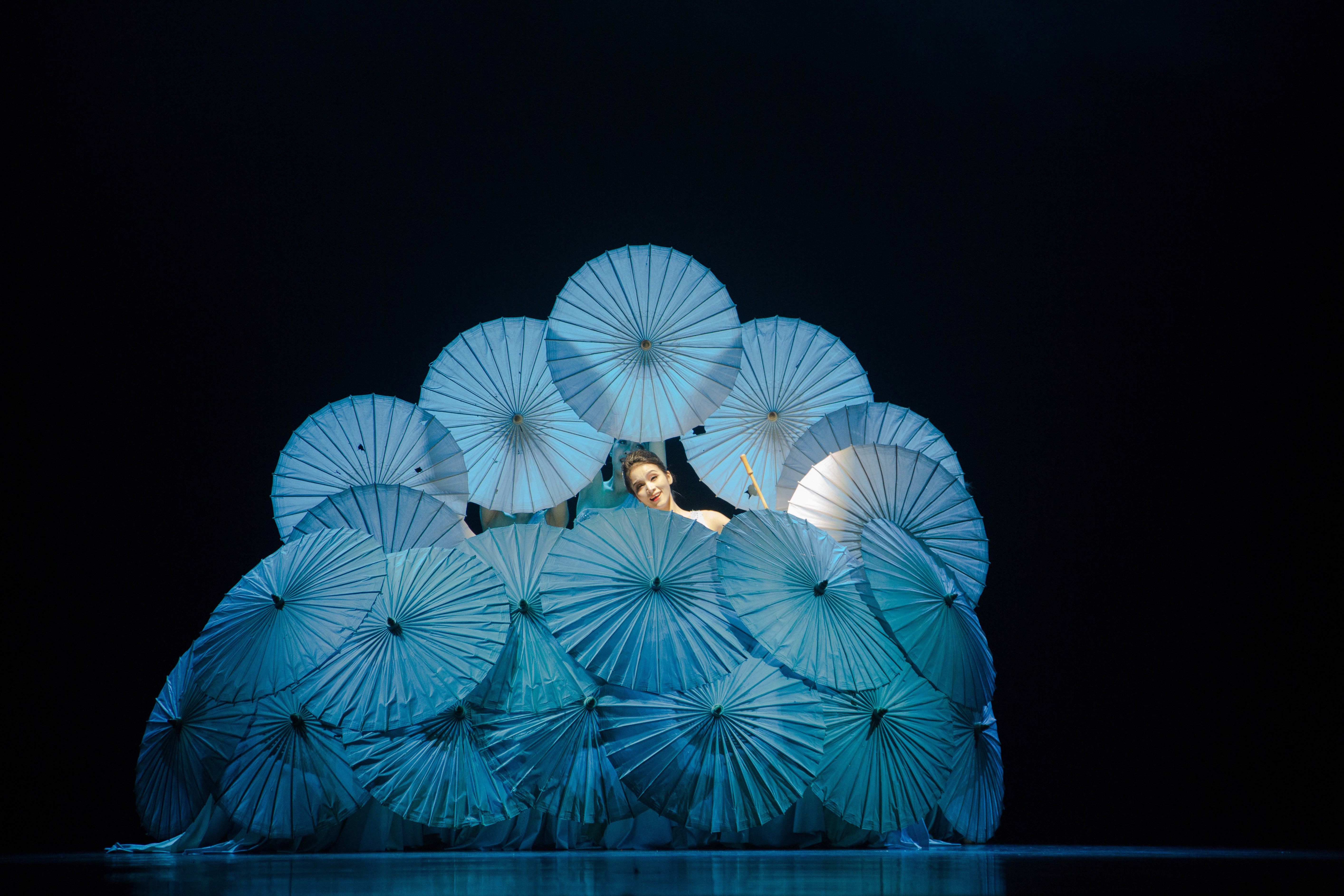 《生命的摇篮》从摇篮的意象出发,以伞为道具,以生命体的转动为切入点,通过热带雨林中人像与物像的塑造,描绘出地球生物在不同环境空间中的情感,如诗如画的纯洁与美丽。是一部反映民族团结、人与自然和谐共生的傣族现实题材舞蹈作品。