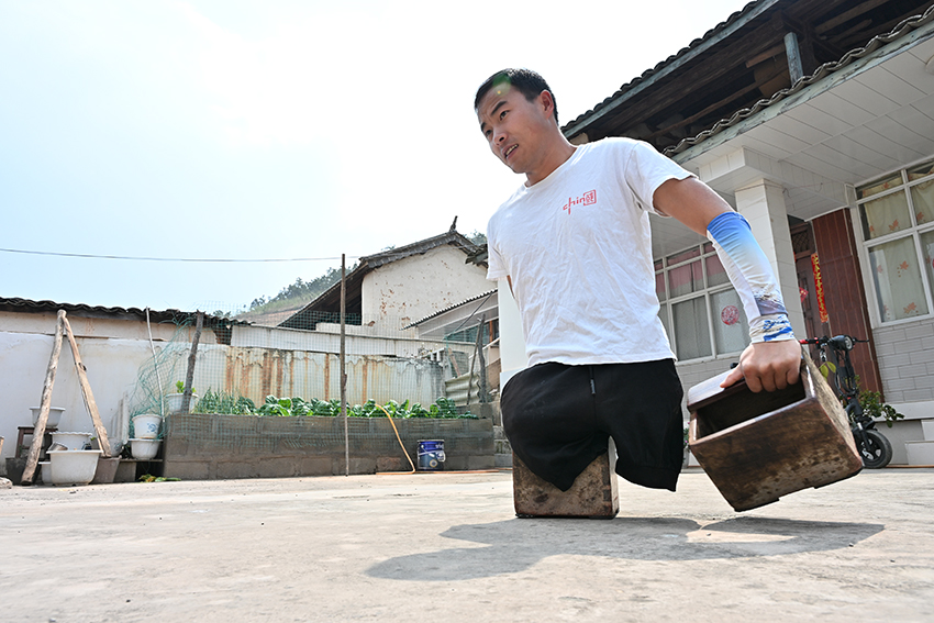 从那以后,王家德重新振作起来,勇敢面对生活。他尝试了各种工作,摆摊卖水果、在家养鸡,还涉足电商带货领域,甚至先后前往浙江、广东等地打工。每一份工作都是他与命运抗争的见证,他在一次次挑战自我身体极限的过程中,顽强地生活着,不断磨砺自己的意志。在此期间,陈州特地给他寄来了两个8斤重的木制手撑,这个看似简单的工具,却为他的日常行动带来了极大便利,王家德一直使用至今,它就像陈州给予的力量,支撑着王家德走过生活的坎坷。