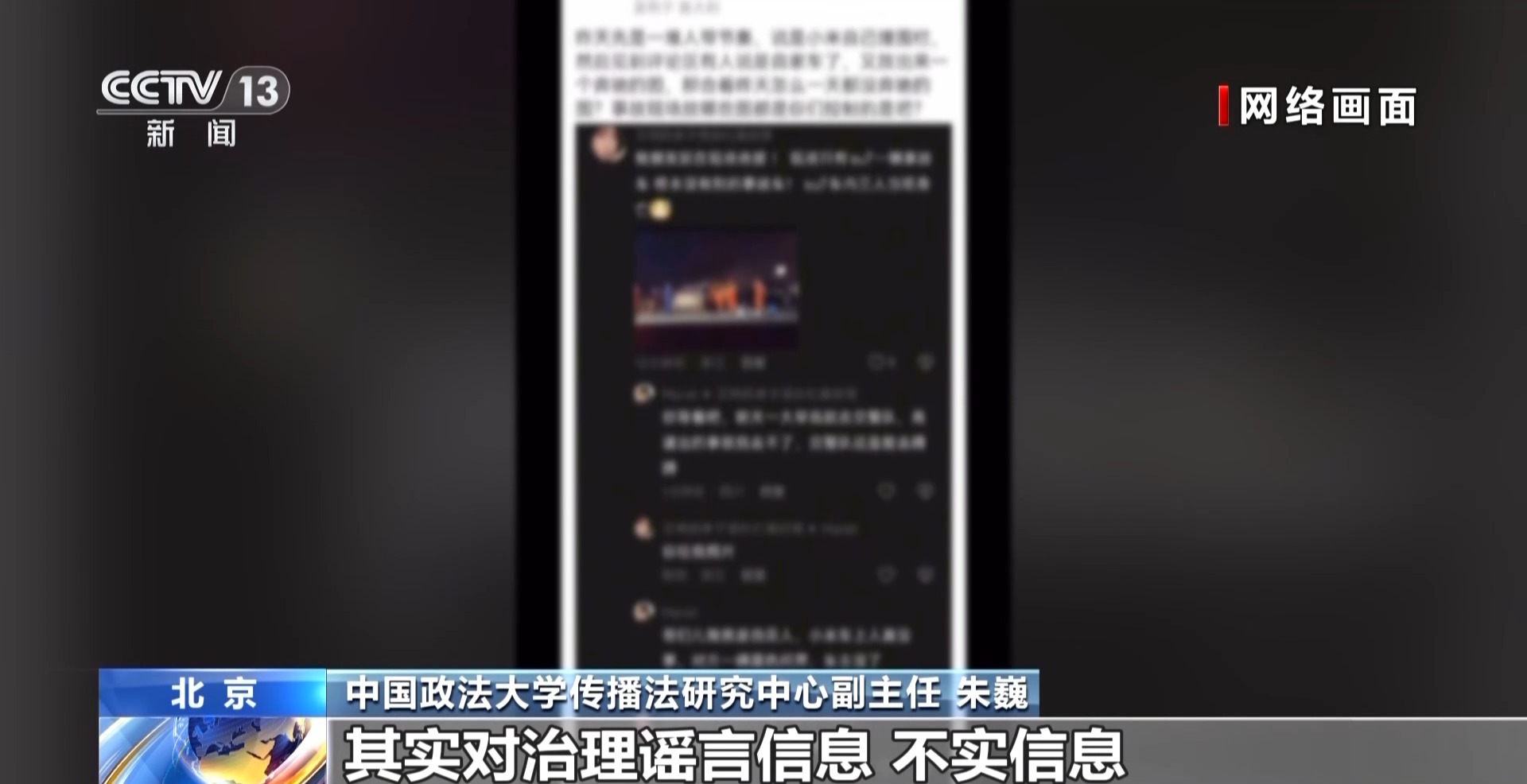 中国政法大学传播法研究中心副主任 朱巍:不实信息、谣言信息,根据我国《网络安全法》的相关规定,这属于一种违法信息的范畴。特别是互联网平台,对治理谣言信息、不实信息都有主体责任。比如在明知或应知有这种谣言出现而没有采取必要措施的时候,平台是要承担连带责任的。