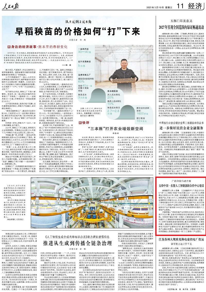 人民日报关注 | 广西出台“人工智能+制造”行动方案
