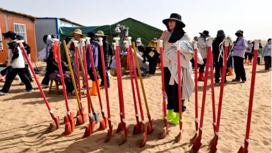 3月8日号开始至今,共有来自全国的13000多名志愿者,踏着春天的脚步,怀揣“绿进沙退,我们在行动”的使命,齐聚民勤县收成镇的沙咀墩开展义务压沙栽种梭梭活动。