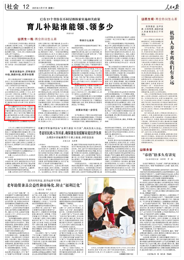 在完善配套政策上,雷安琪建议,应完善托育支持,加快普惠性托育机构发展,降低家庭育儿成本,提高生育意愿。建立长期保障机制,推动“中央财政+地方财政”联合出资,确保补贴政策的稳定性,并探索税收减免、住房支持、职场友好等综合措施,形成长效生育激励体系。