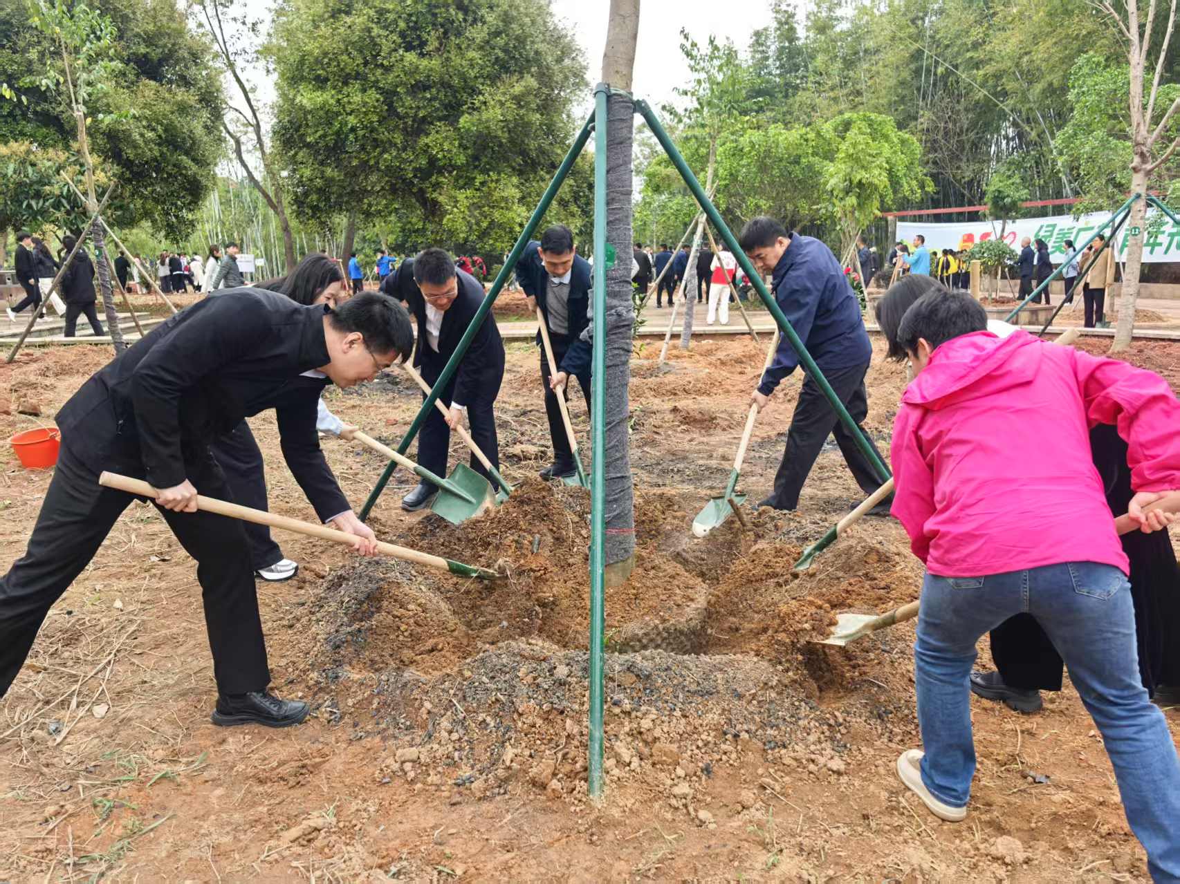 与此同时,由中建四局华南公司、广药集团、市园科院、增城区林科所、小楼镇政府组建的五支志愿服务队伍在活动当天正式成立,将参与到青年林公园后续的树种管护、中医药科普、工程建设、科普宣教和设施日常维护当中。