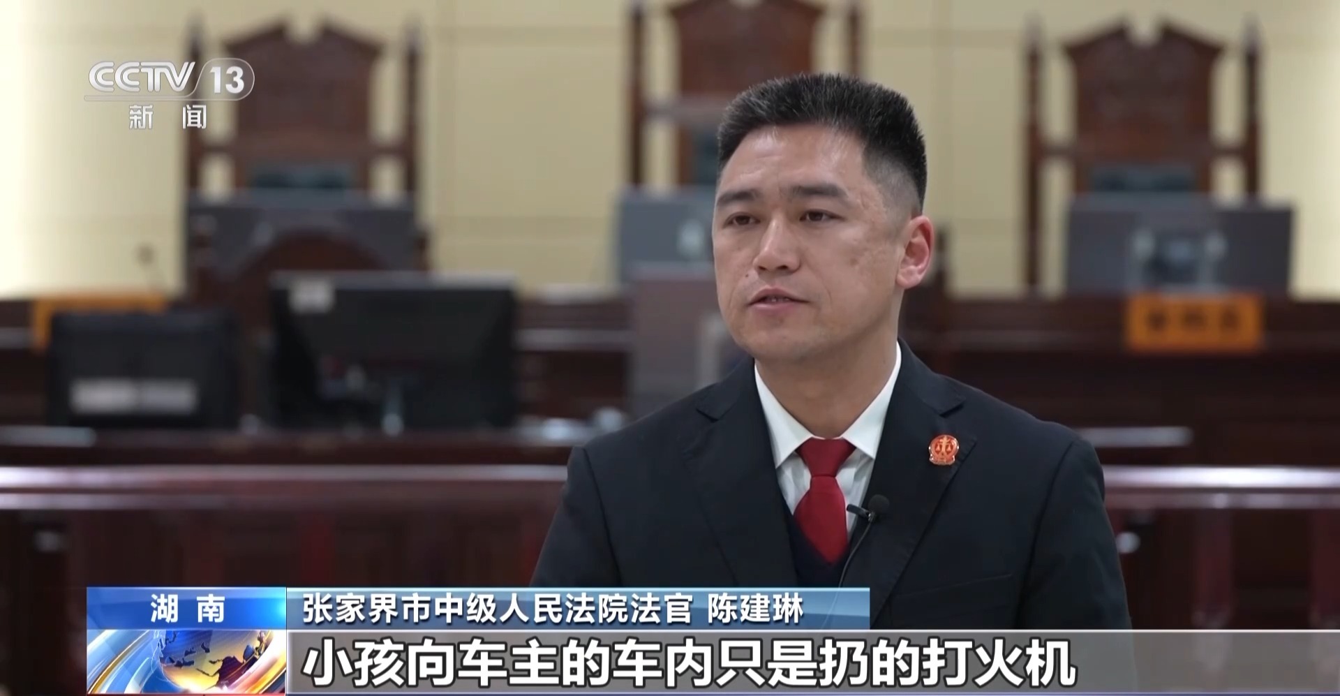 桑植县人民法院瑞塔铺人民法庭庭长 梁婷:被告的小孩从车辆对面的马路边走往车辆途中,一直有点和丢的动作,在小孩走到起火车辆前部位置时,依然往车辆内丢放了一个鞭炮。