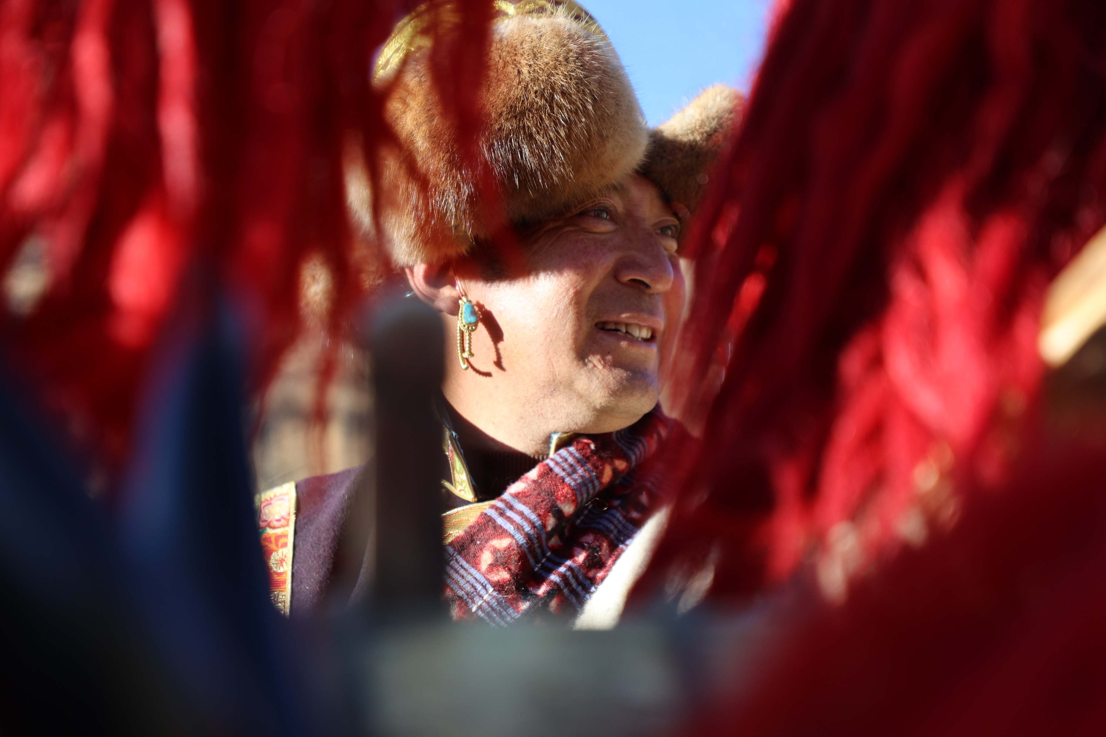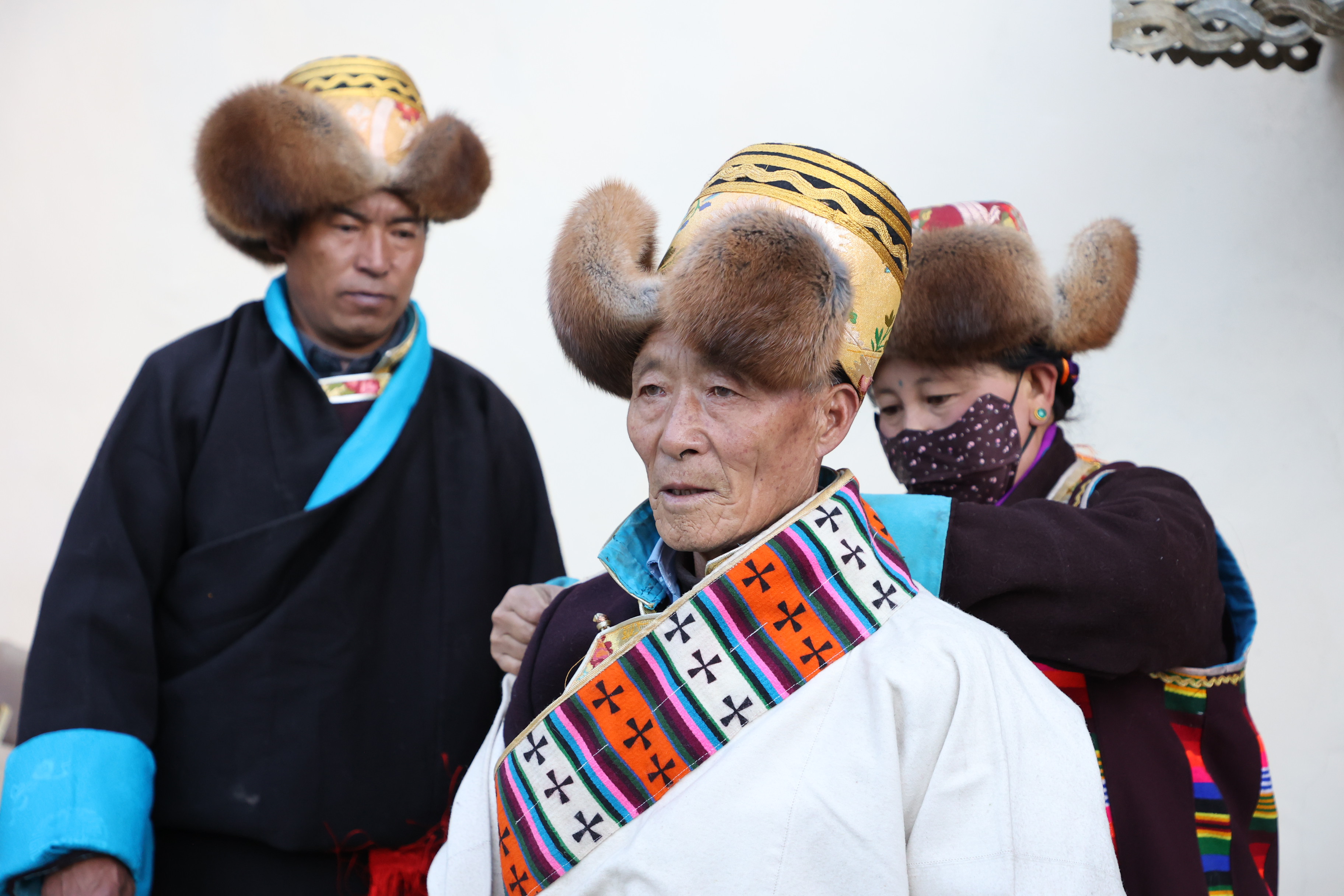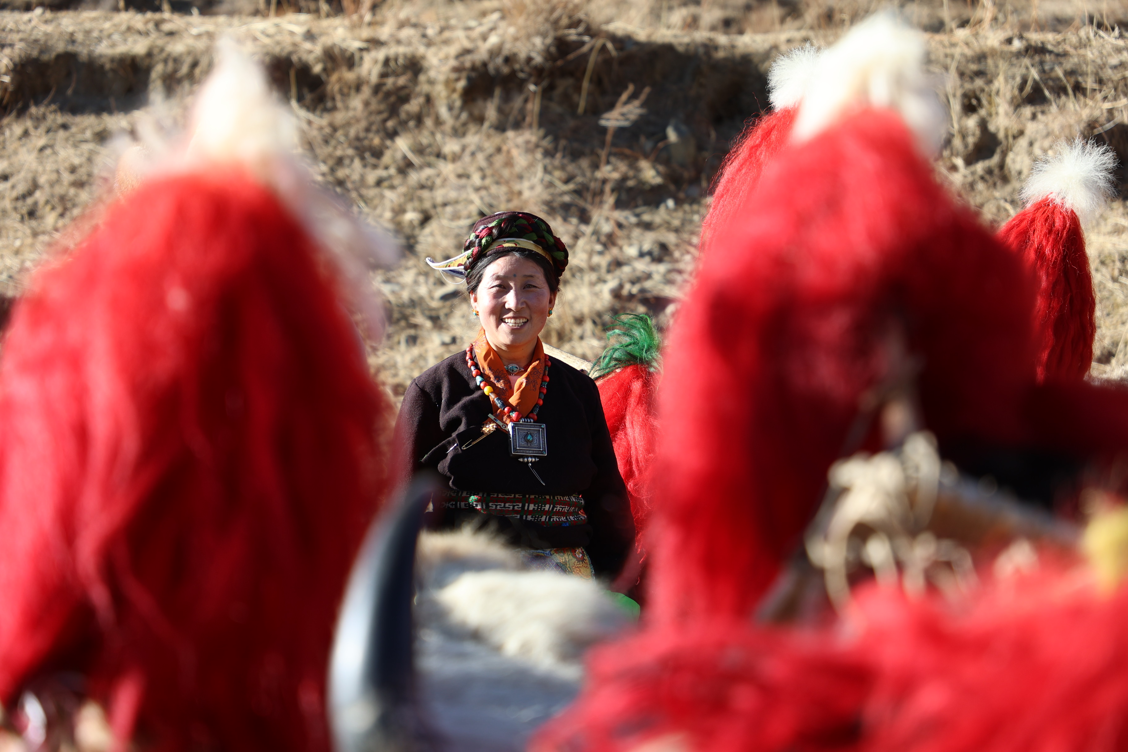 图为村民洛桑身着节日的盛装开始等待着春耕开犁的号令