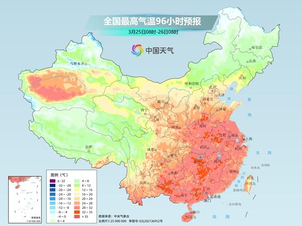 下周初,暖热程度还将加码,24日至26日华北南部到华南最高气温将有大面积超过30℃的区域,恍如初夏。其中,26日黄淮南部、江淮、江南等局地最高气温将接近或超过35℃,部分站点将打破当地三月下旬历史同期极值。省会中,杭州、长沙、南昌、武汉、南京都将接近或者打破当地3月最高温纪录。