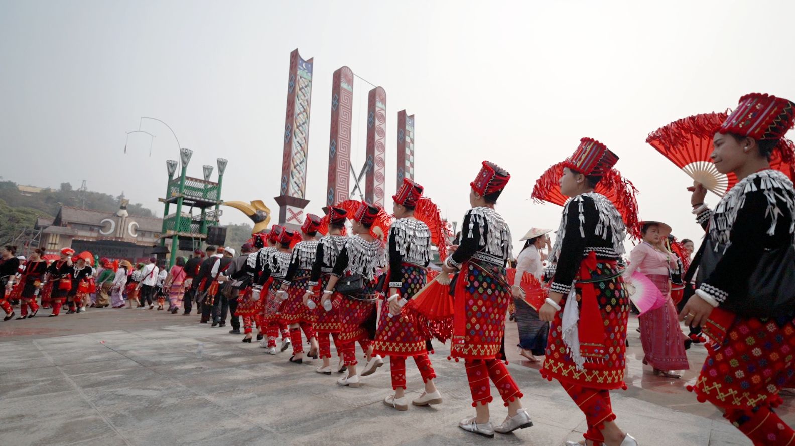 3月22日上午,目瑙纵歌活动在云南省瑞丽市景颇文化园热烈上演。这不仅是一个景颇族的传统节日,也是各民族交流交往交融的生动写照。