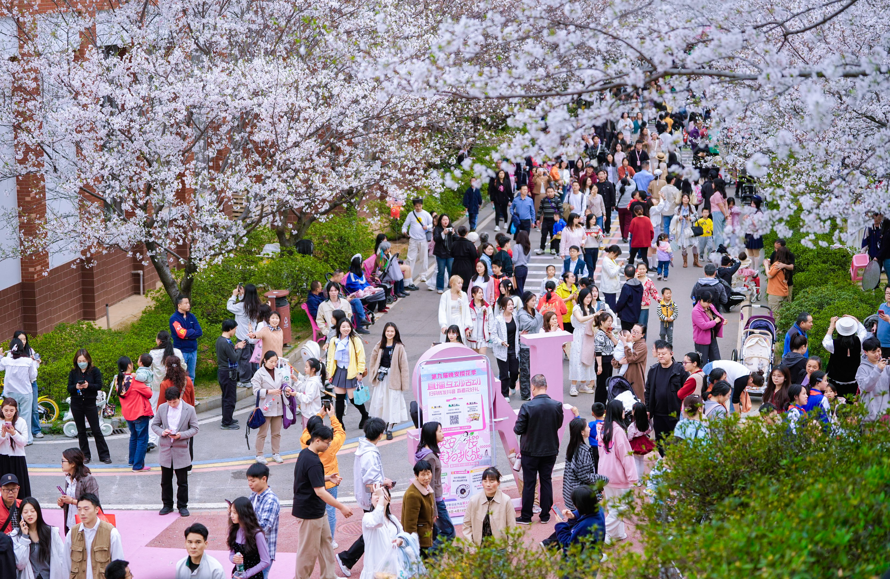 樱花树下,“花样·时光音乐会”、“樱阅时光 春日直播读书会”吟唱出春日的慢时光。作为本次樱花季的IP亮点之一,“花样·时光音乐会”将以音乐为纽带,串联起青春与岁月,唤醒梦与时光。这场别开生面的音乐会,由高校学子与银发乐团携手合作进行公益演出,共同谱写一曲跨越代际的春日乐章,成为银发文旅的一大亮点。