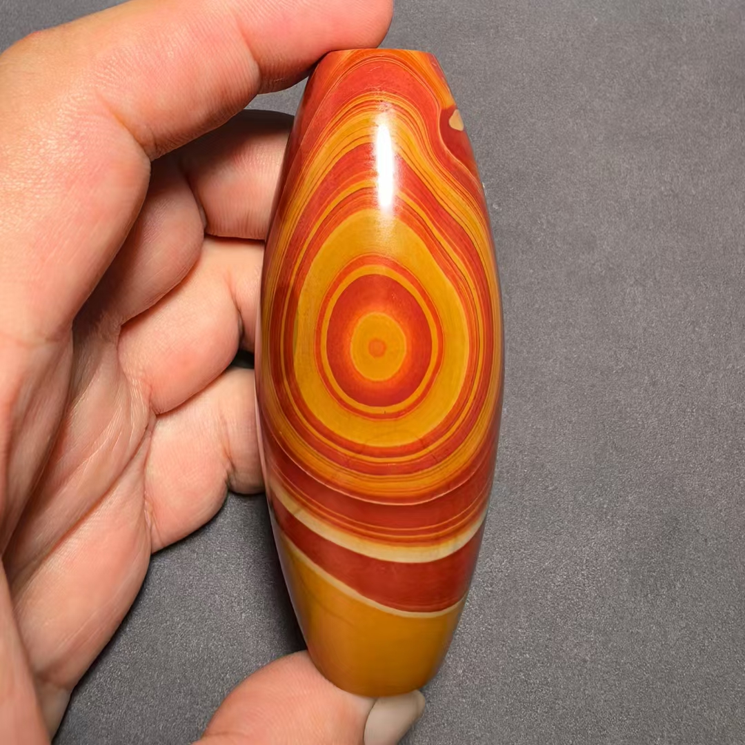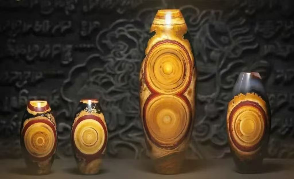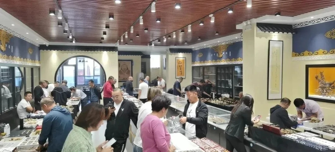 云先生告诉我们,四子王旗的九眼石页岩在1999年被发现认定,但从那时起较长一段时间内却无人问津,当地居民把它们当作普通石头,价值被深深掩埋。发现初期,大众对蒙天珠所知甚少,市场规模微不足道,仅在少数文玩爱好者和当地小范围流通交易。那时,原石常按斤或按堆售卖。因加工工艺粗糙、缺乏系统打磨和雕刻技术等,难以展现出蒙天珠的独特韵味,加工后的成品价格同样不高,整个蒙天珠业界尚处于萌芽探索阶段。