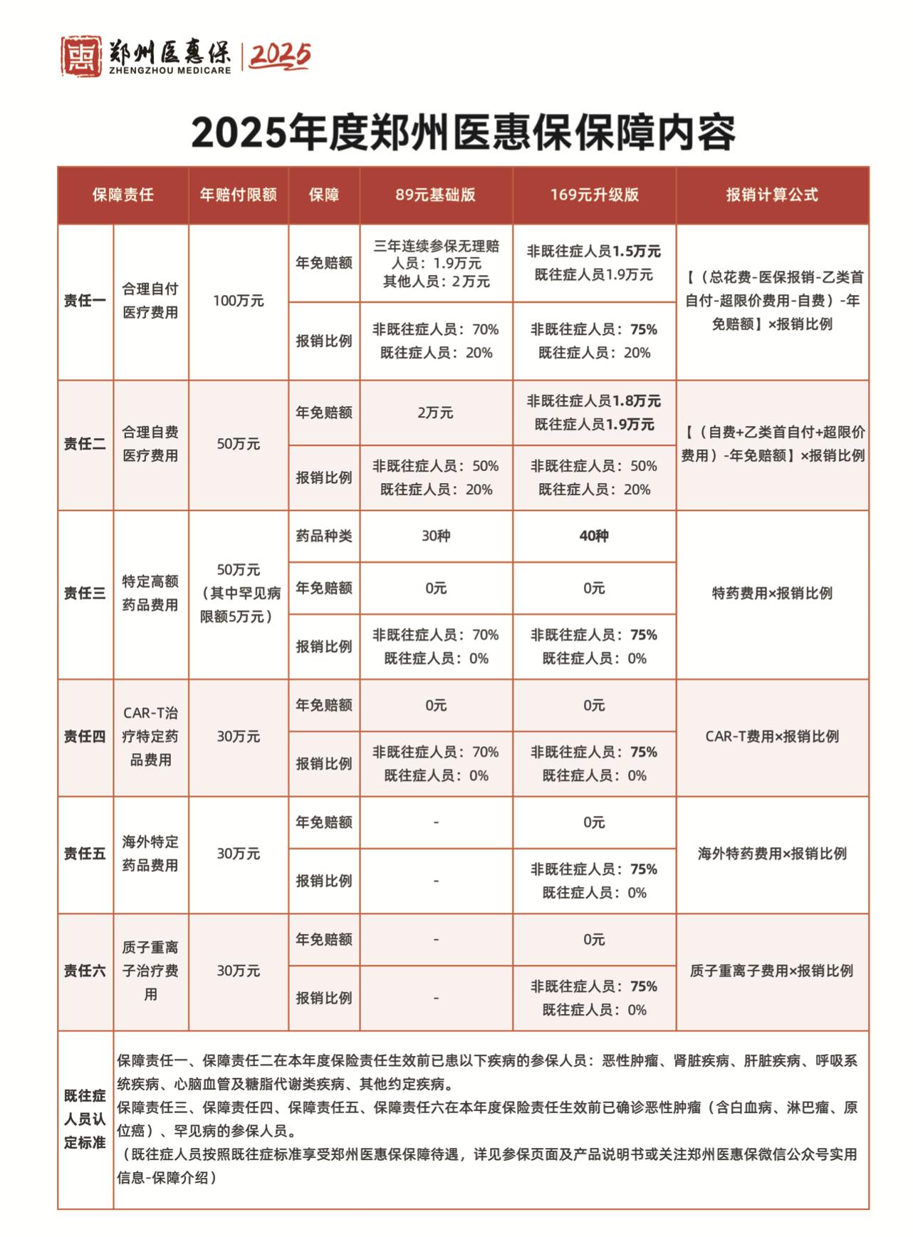 值得注意的是,相较于基础版,此次新增的升级版“郑州医惠保”还降低了年免赔额;覆盖了更多特定高额药品种类;扩大了非既往症人员CAR-T特定药品费用报销比例;新增了海外特定药品费用和质子重离子治疗的费用报销。