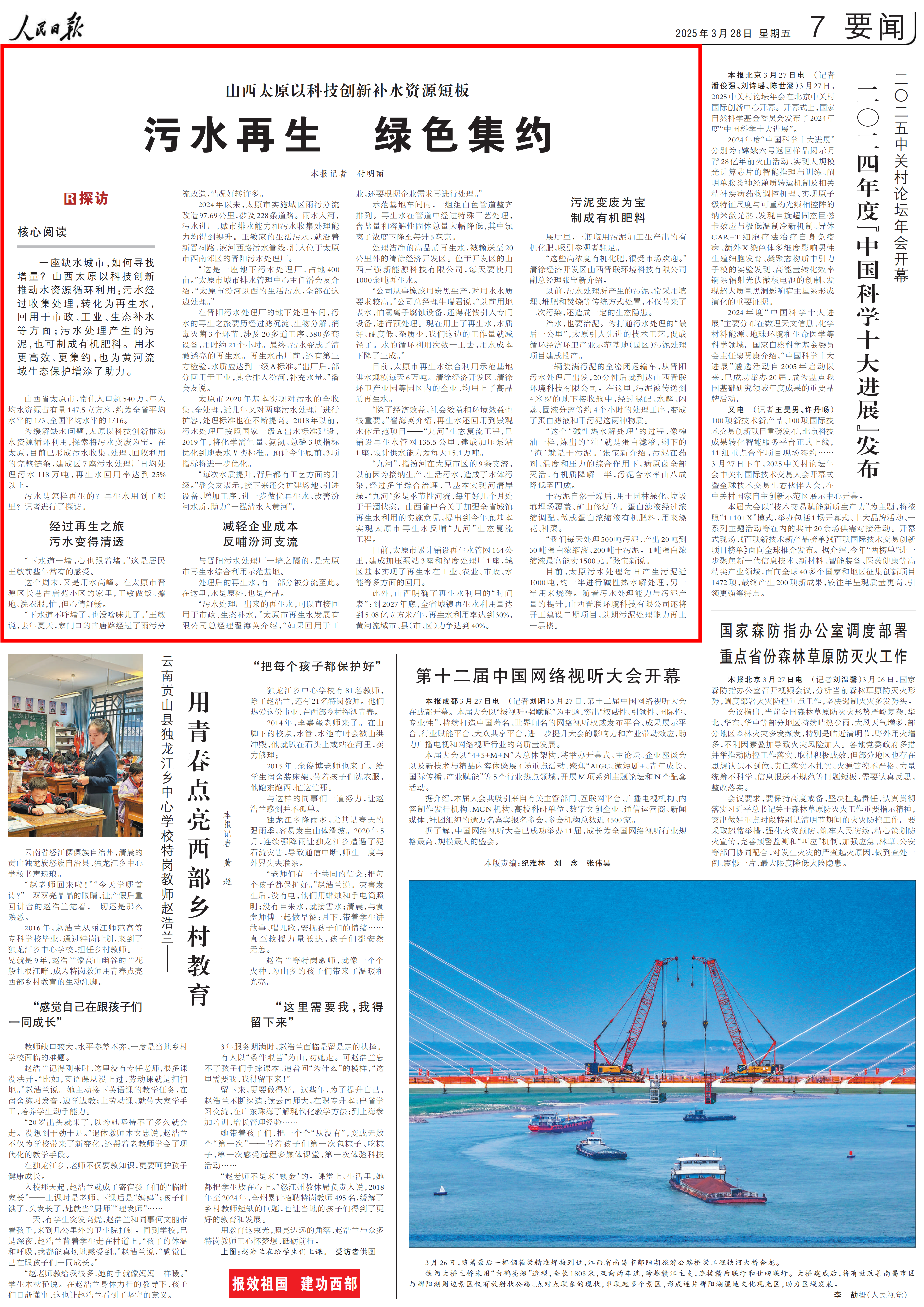 一座缺水城市,如何寻找增量?山西太原以科技创新推动水资源循环利用:污水经过收集处理,转化为再生水,回用于市政、工业、生态补水等方面;污水处理产生的污泥,也可制成有机肥料。用水更高效、更集约,也为黄河流域生态保护增添了助力。