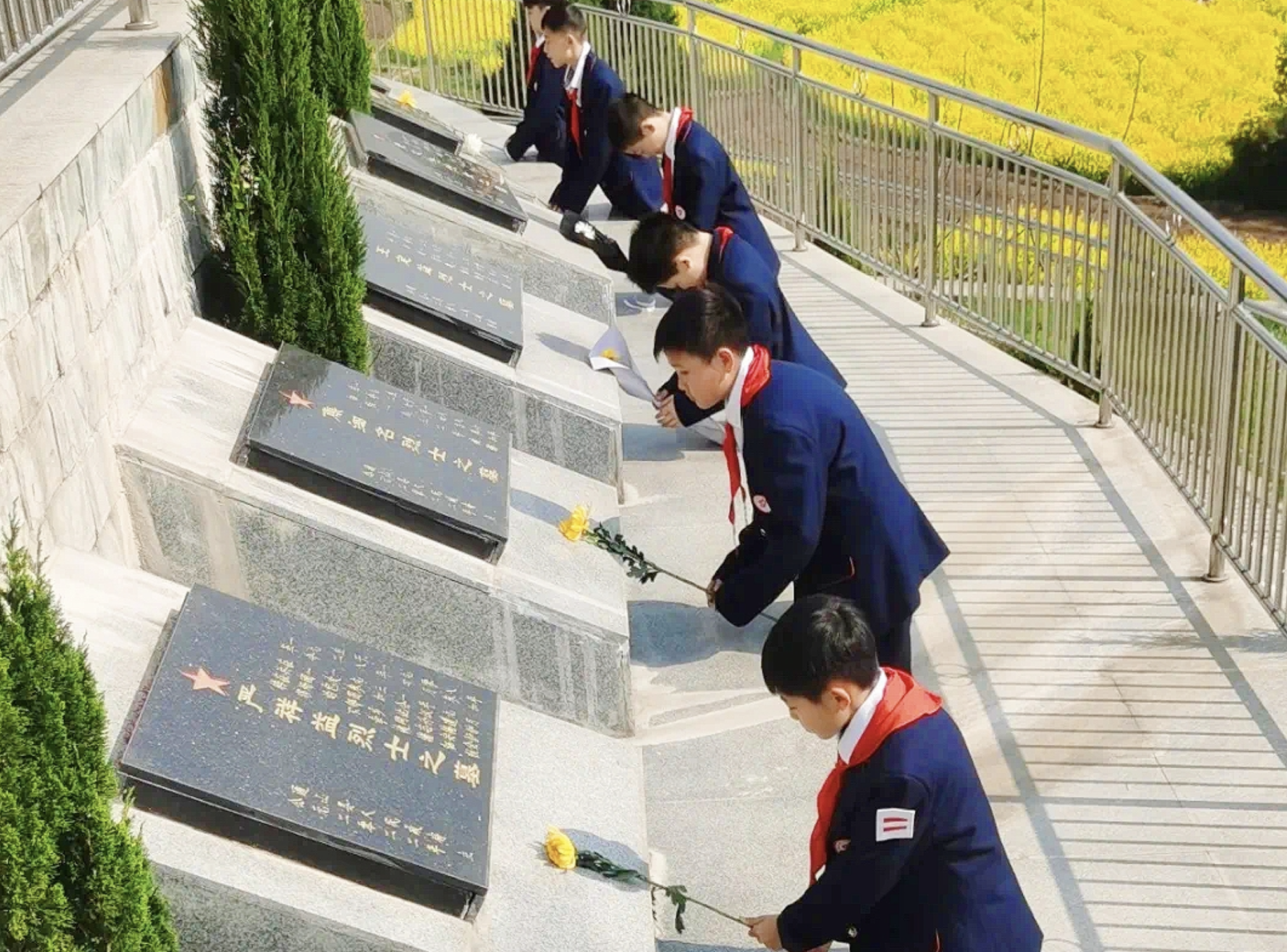又是一年春草绿,梨花风起正清明。清明节来临之际,为进一步加强学生爱国主义教育、革命传统教育和感恩教育,湖北通山县各学校开展多种形式的“清明祭英烈”主题教育活动。在县特殊教育学校的祭扫活动中,师生们通过垂首默哀、倾身献花、环绕烈士墓、轻抚碑文等方式,传递出最真挚的缅怀之情,无声的敬意更显深沉;通羊四小的学生们身着整齐校服、高举少先队旗,在“红领巾讲解员”带领下,全体诵读英烈事迹,誓言“勤奋学习报效祖国”;县实验小学的学生们更在活动中主动拿起清扫工具,擦拭墓碑、清理陵园,用自己的双手,守护这片圣洁之地。