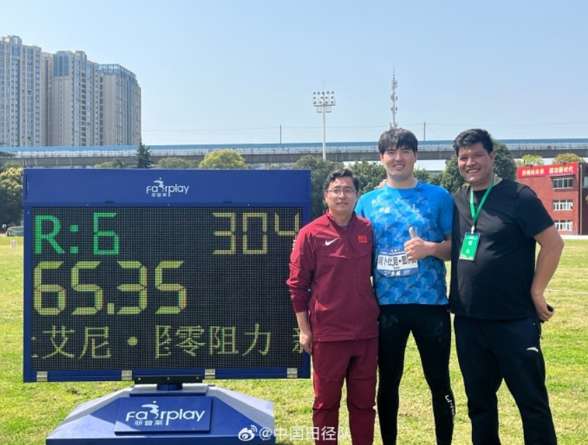 阿卜杜艾尼·图尔贡在2日进行的全国田径投掷项群赛男子铁饼比赛中,掷出65米35,大幅刷新个人最好成绩夺冠的同时打破了尘封29年的男子铁饼全国纪录。
