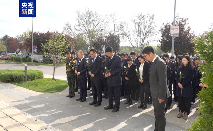 当地时间4月4日,中国驻塞尔维亚使馆在中国驻南斯拉夫联盟大使馆旧址纪念碑前举行悼念活动,缅怀在1999年北约轰炸中牺牲的邵云环、许杏虎和朱颖3位烈士。