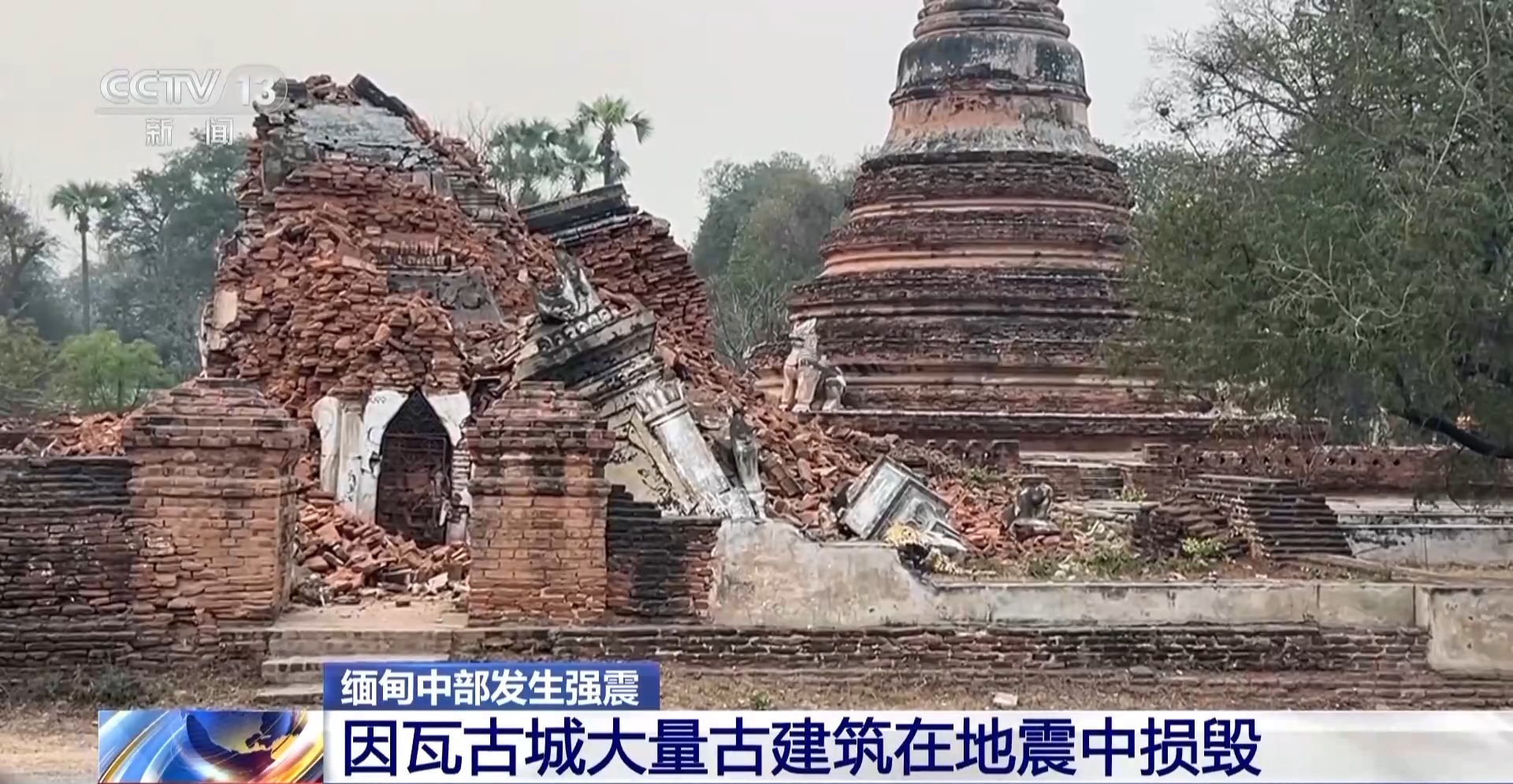 总台记者 刘畅:我现在是在缅甸曼德勒省的因瓦,这是一座历史文化名城,在我身后就是一处著名的历史建筑。但是我们可以看到,它已经在3月28日的大地震中完全毁坏了。