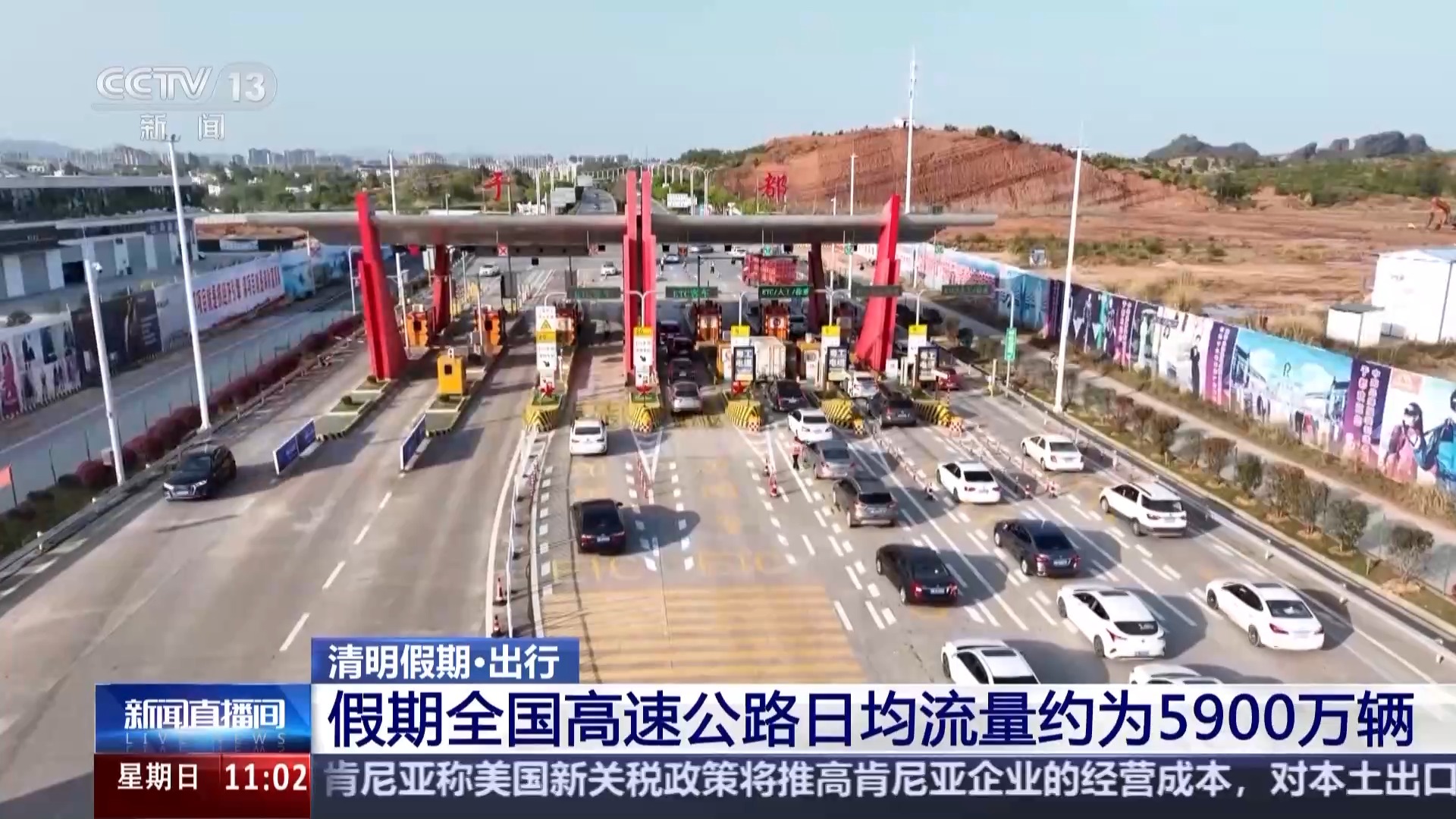 总台央视记者 陈晰:今天是清明假期的最后一天,7座及7座以下小型客车免费通行时间截止到今天的24时。今年的清明假期,天气总体利于出行,全国路网流量保持在高位运行。预计今天16时到18时会出现返程客流相对集中的情况。