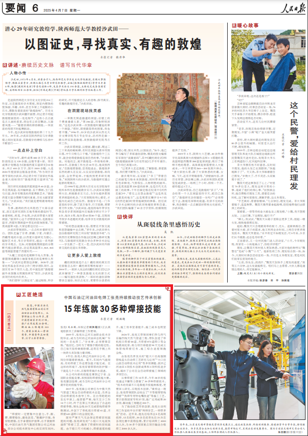 2024年,张亮又带领同事们参与西气东输四线天然气管道工程,带队创造了单机组日焊接58道、月焊接873道焊口等全线最高纪录,助力项目部提前95天完成主体管线焊接任务,施工综合进度领跑全线。