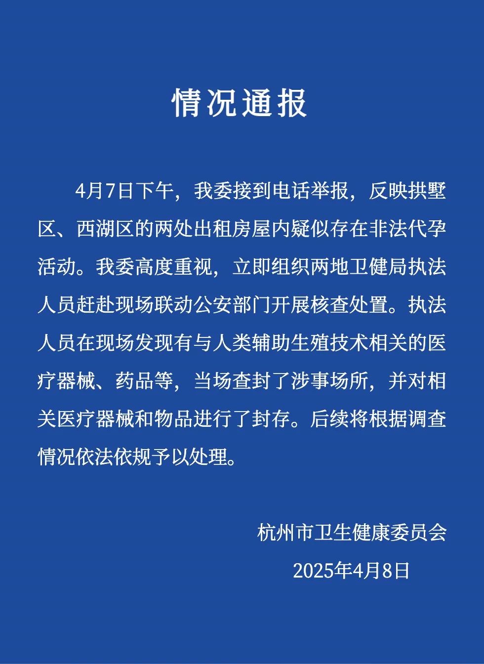 非法代孕不仅践踏生命伦理,危害代孕母亲健康与代孕子女权益,更滋生拐卖、遗弃等恶性犯罪,严重破坏社会秩序。执法机关应当深挖医疗器械来源、人员网络及利益链条,依法严惩涉案人员,从源头斩断黑色产业链,守护法律与伦理底线。