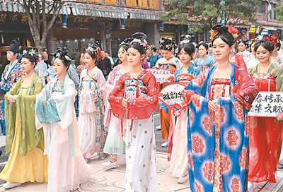 “这次对传统服饰文化的体验太难忘了。”同样被华服魅力折服的,还有在昆明市官渡区观看华服巡演的昆明城市学院学生刘子旭,“官渡古镇青瓦白墙,本就满是‘古风’氛围,华服巡演队伍一出现,感觉就像穿越了时空。”