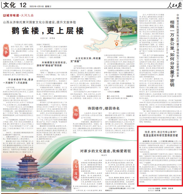 本报沈阳4月8日电(记者吴月辉、郝迎灿)近期,中国科学院金属研究所沈阳材料科学国家研究中心卢磊研究员团队领衔的一项最新科研成果,提出了一种全新的结构设计思路,在成功让金属材料保持高强度、高塑性的同时,大幅提升其稳定性。这项成果于北京时间4月4日凌晨在国际学术期刊《科学》发表。