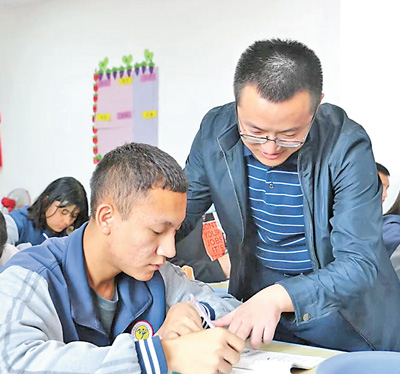 翟腾飞在华山中学辅导学生。 |