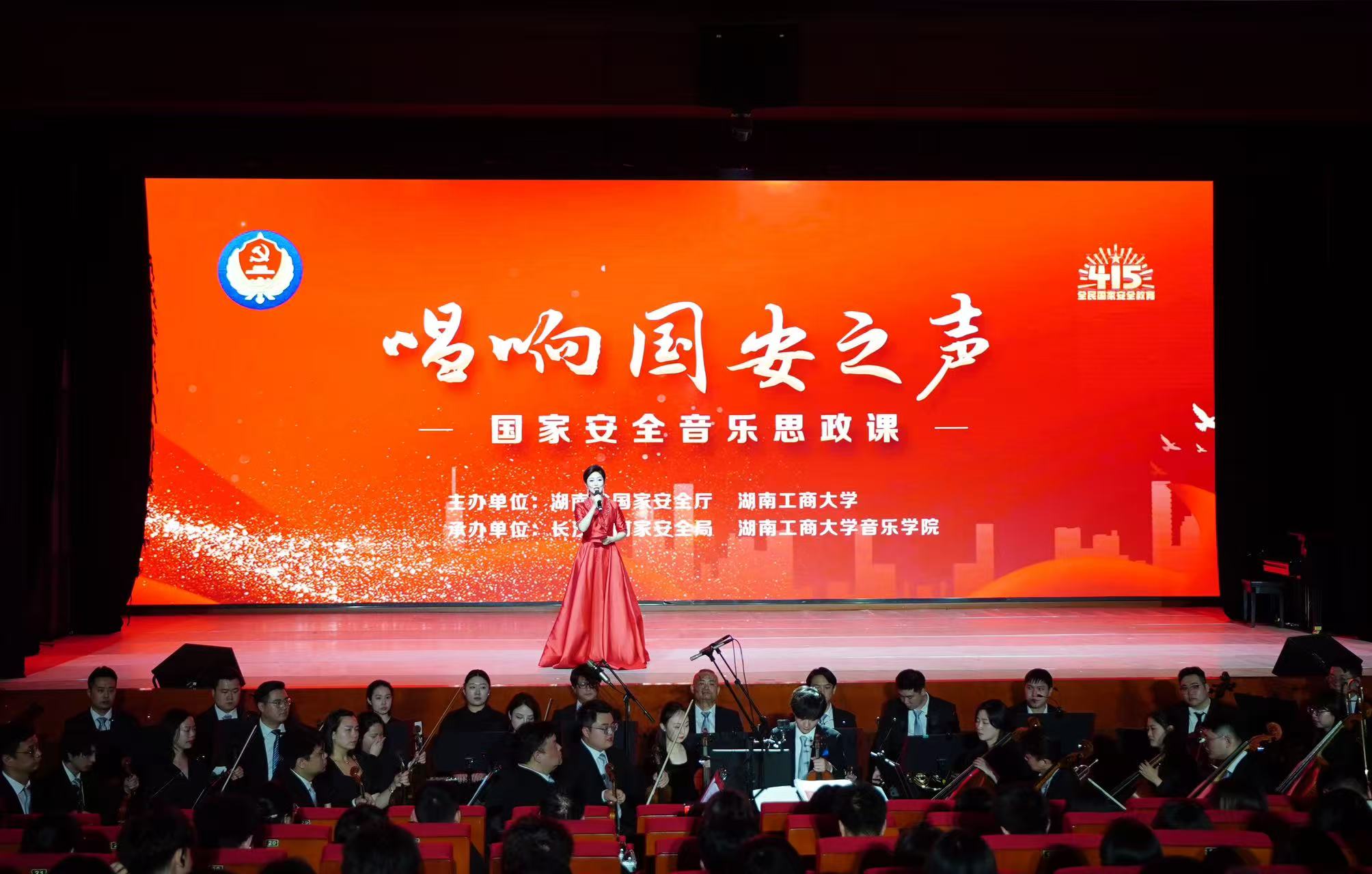 今年4月15日是第十个全民国家安全教育日。近日,湖南省国家安全机关联合湖南工商大学举办的“唱响国安之声”音乐思政课在湘江实验室报告厅生动开讲。活动将全民国家安全教育与“文化+科技”形式深度融合,通过合唱、交响乐、舞台剧等十余个原创节目,让“全民国家安全教育 走深走实十周年”主题在音乐旋律中浸润人心,旨在增强群众国家安全意识和素养,湖南省内高校师生、科研人员、企业代表等500余人参加活动。
