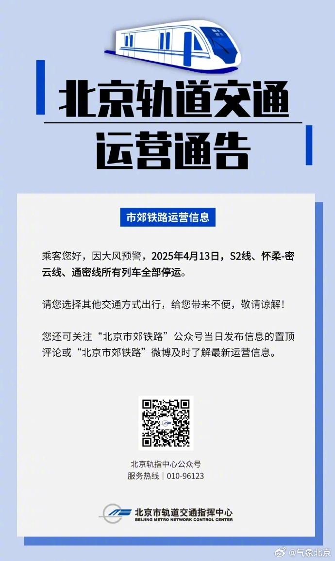 4月13日,S2线、怀柔-密云线、通密线所有列车临时停运。