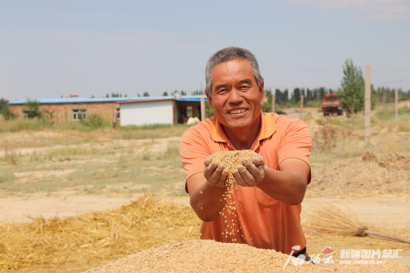 ∆奇台县小麦丰收,村民展示收获的小麦。(资料图)奇台县融媒体中心供图