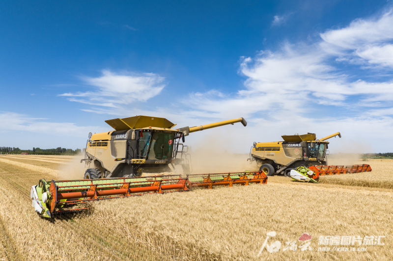 ∆2024年7月15日,在奇台县半截沟镇腰站子村,农机手驾驶联合收割机收获小麦。(资料图)何龙 摄