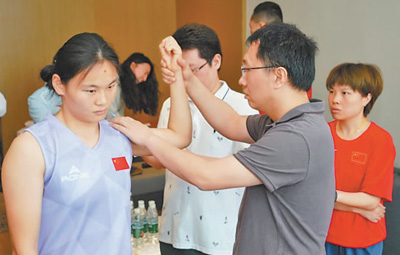 医疗专家团对中国女子橄榄球队队员进行康复指导。 |