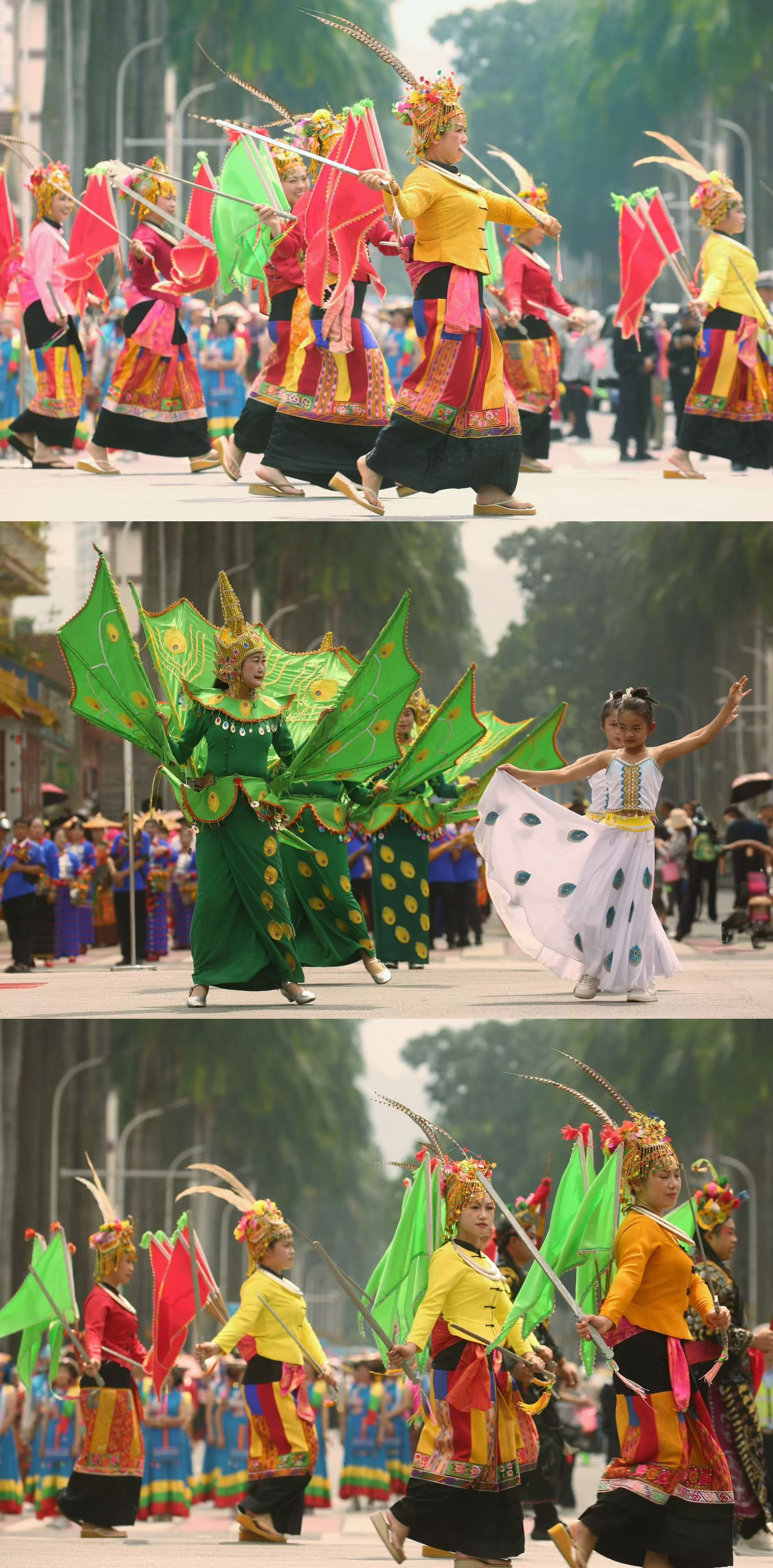 傣族被称为“水的民族”,泼水节是傣族和德昂族最盛大、最隆重的传统节日,也是德宏州各族人民大团结、大联欢的盛会。按照传统,这一天,各族民众都会穿上盛装相约广场,敲起金铓锣,打起象脚鼓,纵情狂欢,用泼水的方式互相传递美好祝福。
