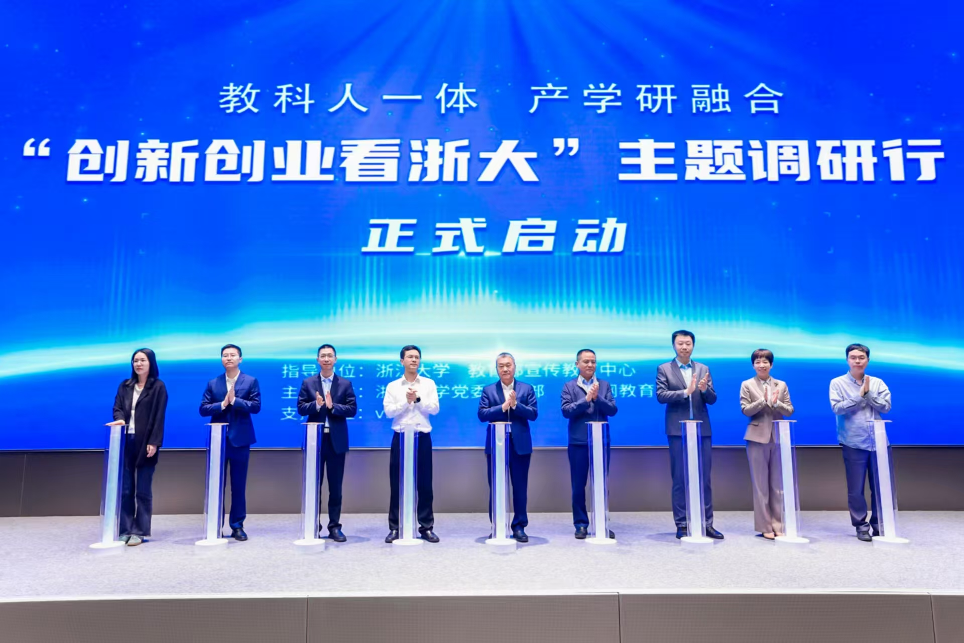 当天启动仪式上,浙江大学党委副书记朱世强致辞,并与省委宣传部、省教育厅、人民网、中央广播电视总台、浙江日报、抖音集团有关部门负责人共同启动调研行。仪式上浙江大学相关部门负责人还发布了本次调研行的看点导览,介绍了科技成果转移转化的浙大探索以及以浙江大学校友企业总部经济园为例打造创新创业生态的案例。媒体代表分享了新闻媒体赋能教科人一体发展的实践探索和对浙江大学创新创业生态的观察思考。一批媒体记者代表受聘为学生记者特战队的业务导师,指导学生在调研行中深入观察和采访。