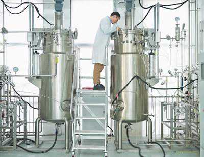 盈嘉合生研究人员查看发酵罐的发酵情况。 |