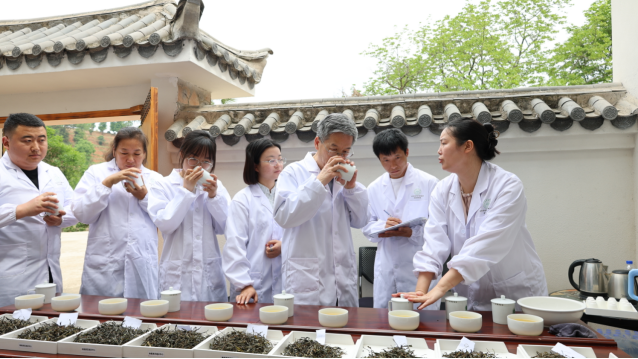 文化节现场,团队开展了茶叶审评活动。凭借扎实的专业功底,审评专家从外形、香气、汤色、滋味到叶底等维度,对各村组选送的茶样进行精细化分析,并结合地域特点现场开具“品质提升处方”,帮助茶农茶企精准把握加工环节的优化方向,以科学手段赋能产品竞争力提升。