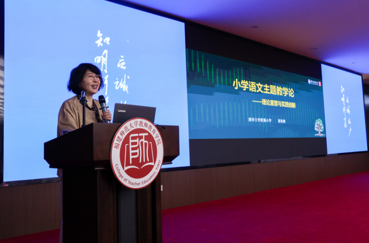 4月12日,福建师范大学教师教育学院举办“名师讲坛”暨个性化培养周系列活动,清华大学附属小学校长、清华附小集团化办学总校校长、清华大学教育研究院基础教育研究所所长窦桂梅受邀作题为《小学语文主题教学论:理论重塑与价值创新》的专题讲座。