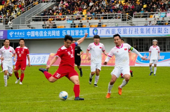 地缘相近,民心相通。黎文河与余鑫因踢球相识多年,“场上是对手,场下是朋友。”黎文河介绍,两人相识于中国东兴—越南芒街元宵节足球友谊赛。“元宵节赛也在东兴举办,办了30届了。”余鑫笑着插话。黎文河掰着手指细数,2012年以来,他已经参加了10届元宵节赛,早已成为东兴球友们的“老熟人”。