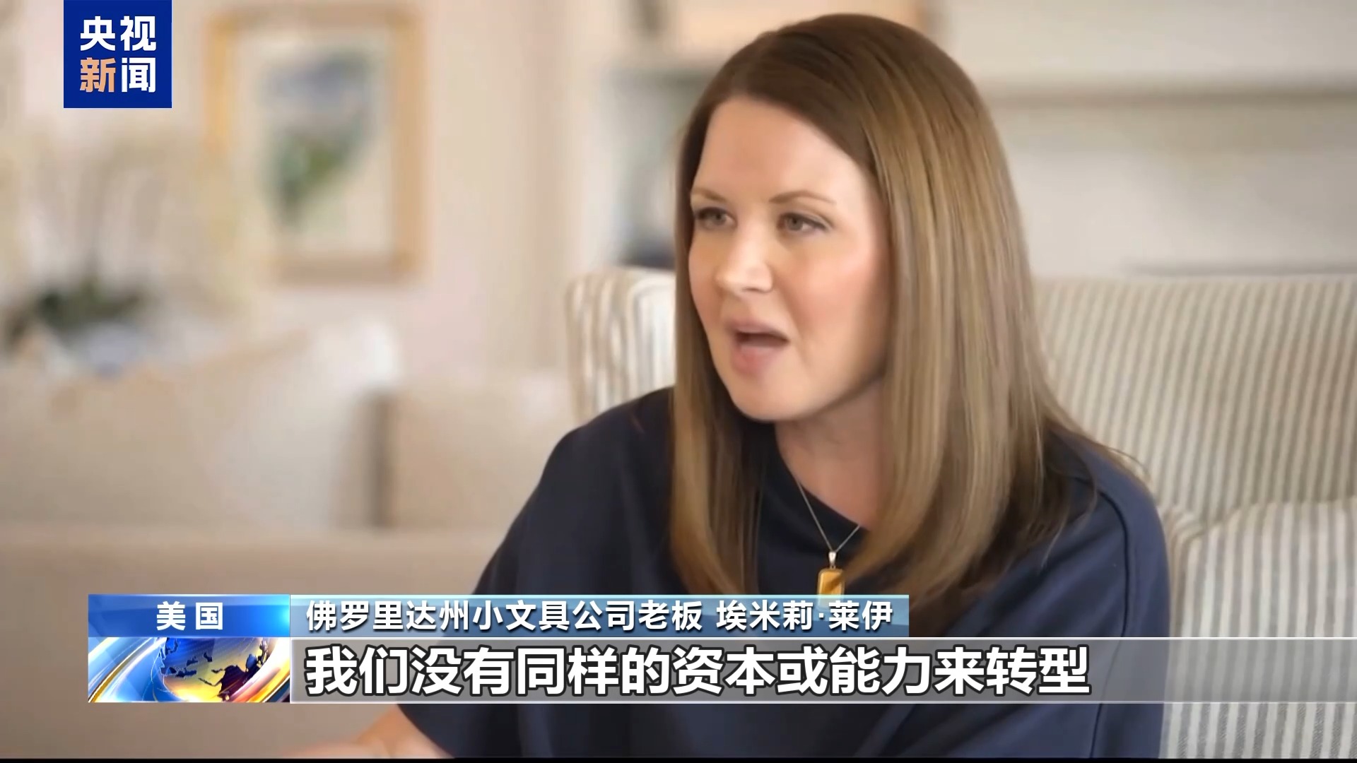 埃米莉表示,美国的很多企业都受到了关税政策冲击,而她的文具公司规模小,资源条件有限,更加难以承受这样的冲击,正面临严峻的生存危机。