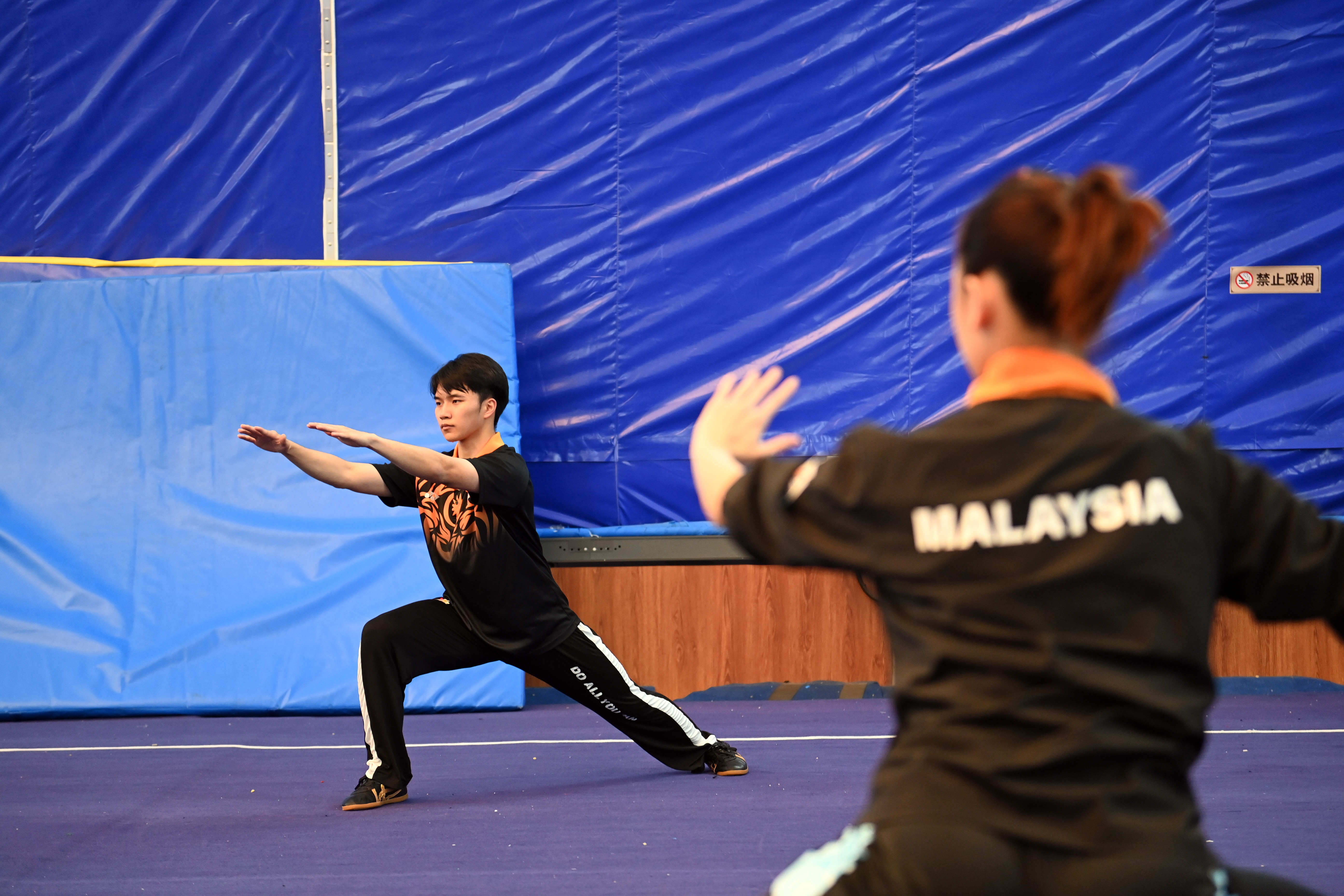 马来西亚国家武术队太极拳项目选手在练习