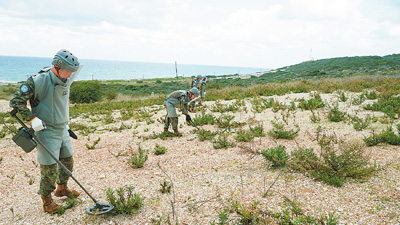 中国赴黎巴嫩维和部队官兵在执行靶场清排任务。 |