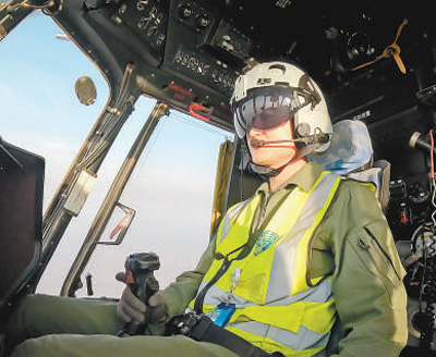 中国赴阿卜耶伊维和直升机分队飞行员赵嘉文驾驶直升机执行物资运输任务。 |