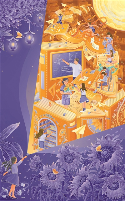 世界读书日插画海报,人民日报客户端出品,钟金叶绘制。 |