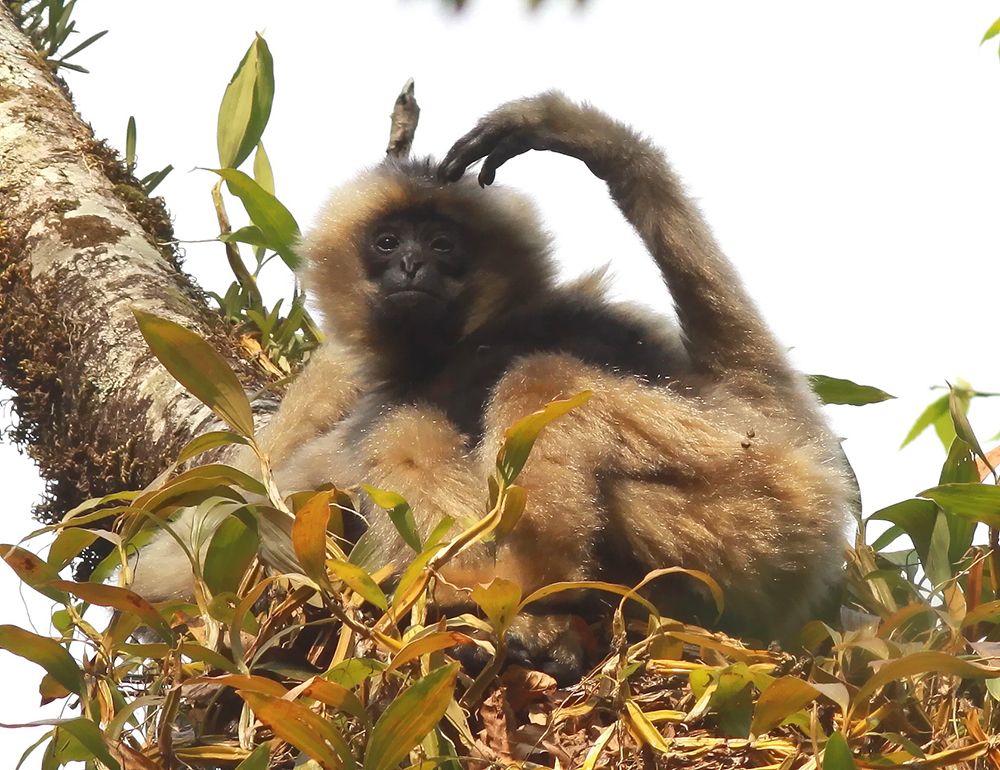 生活在树上的西黑冠长臂猿。景东县融媒体中心供图